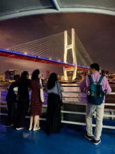 学生たちは共同でフェリーに乗船し、レストランへと向かってしゃぶしゃぶを楽しみました。リラックスした雰囲気の中で美味しい食事を共有することで、参加者同士の親睦を深めるとともに、温かい絆を感じ取ることができました。